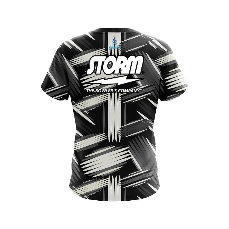 Storm Striped Pattern semi-custom bowling jersey in CoolWick’s 40% cooler moisture-wicking fabric. Add your name on back, choose your sleeve length and collar style, and place logos on the chest and sleeves. Hand-made in the USA. Free shipping.