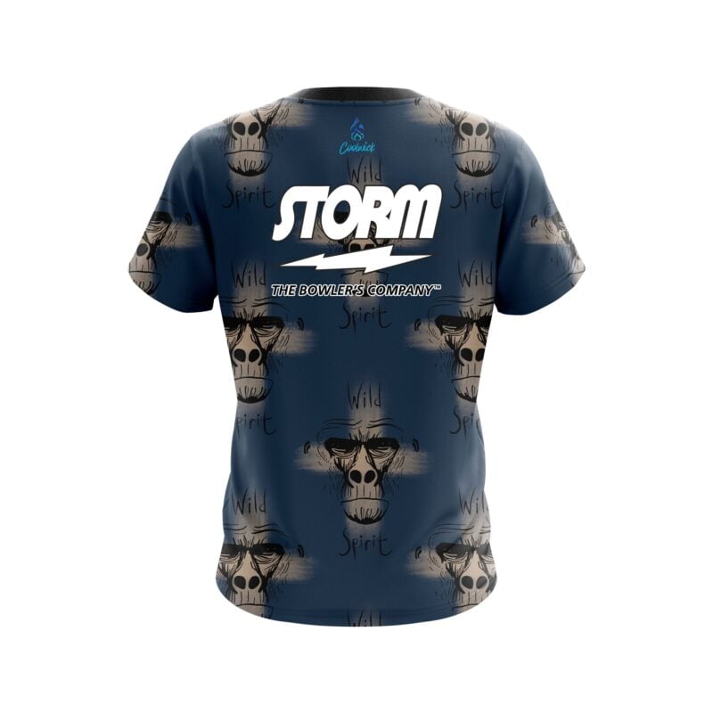 Storm Wild Spirit Monkey semi-custom bowling jersey in CoolWick’s 40% cooler moisture-wicking fabric. Add your name on back, choose your sleeve length and collar style, and place logos on the chest and sleeves. Hand-made in the USA. Free shipping.