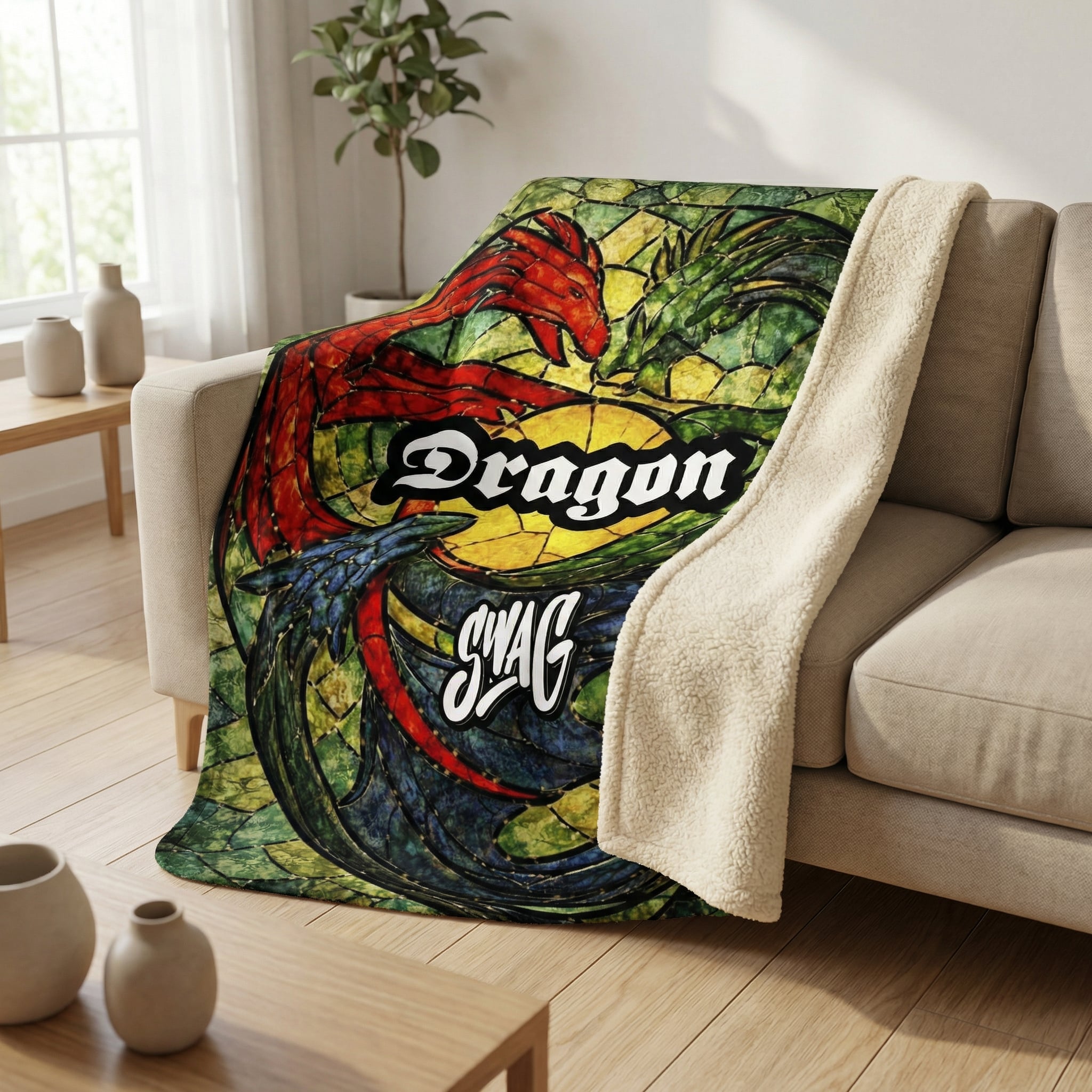 SWAG Dragon Stained Glass Sherpa Lined Throw Blanket