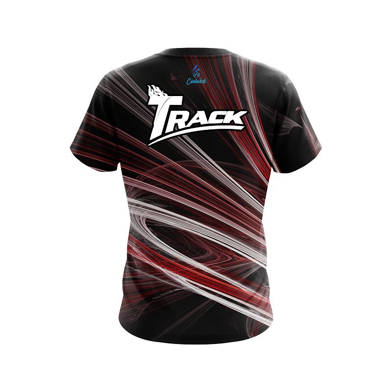Stay 40% Cooler with the Track Red Motion Swirl CoolWick Bowling Jersey